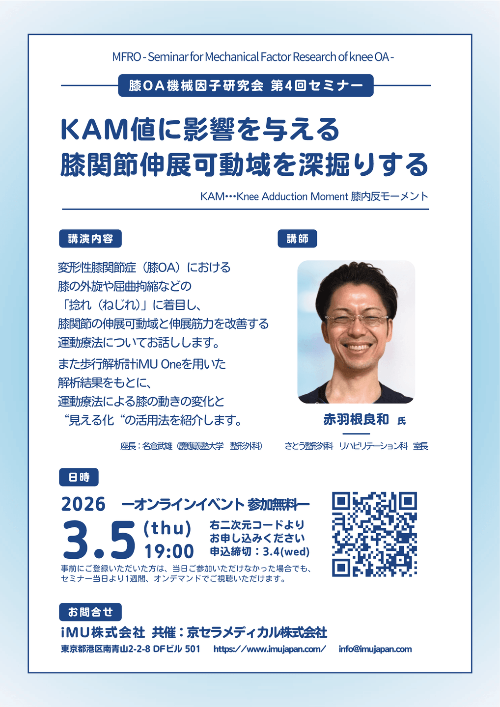 変形性膝関節症(膝OA)のデジタルバイオマーカーKAM(Knee Adductuion Moment)を